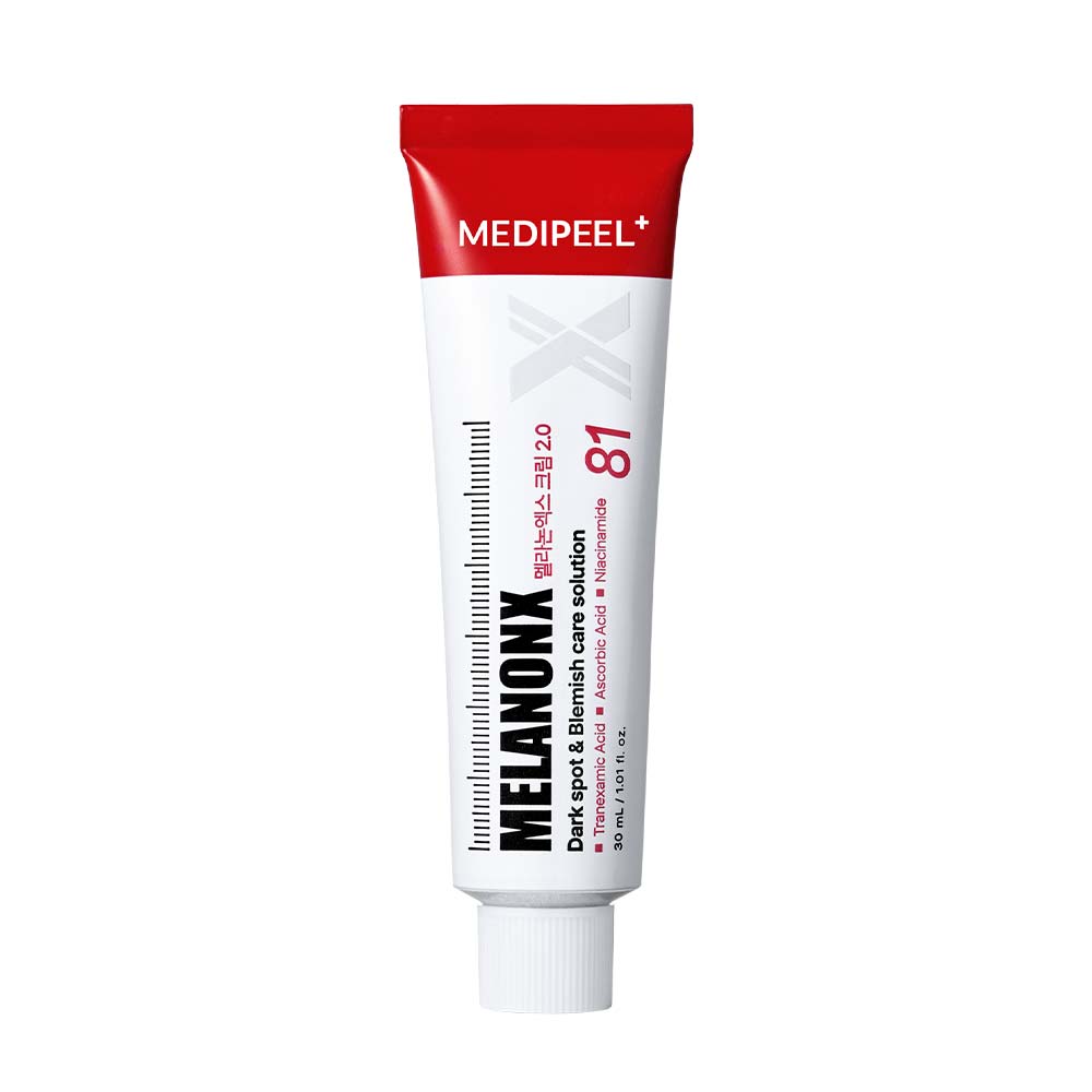 Η Medi-peel Melanon X Cream είναι μια λευκαντική κρέμα που αντιμετωπίζει σκούρα σημάδια, φακίδες, σημάδια ακμής, κηλίδες ηλικίας, δυσχρωμίες και μελάγχρωση. Περιέχει πολλαπλούς ισχυρούς λευκαντικούς παράγοντες όπως νιασιναμίδη, άλφα-αρβουτίνη, βιταμίνη C (ασκορβικό οξύ), καρνιτίνη και τρανεξαμικό οξύ για να φωτίσει το δέρμα και να ρυθμίσει την παραγωγή μελανίνης. Αυτοί οι λευκαντικοί παράγοντες προλαμβάνουν την μελάγχρωση και βοηθούν στην εξομάλυνση του τόνου του δέρματος. Η κρέμα φωτίζει το δέρμα, λευκαίνει την ανεπιθύμητη μελάγχρωση και μετά την ακμή εξομαλύνει συνολικά την επιδερμίδα και καταπραΰνει την ερυθρότητα. Ακόμη, εξαλείφει τη θαμπάδα και την ξηρότητα, τονώνει, θρέφει και αναπληρώνει την έλλειψη υγρασίας στην επιδερμίδα, κάνοντας το δέρμα απαλό και βελούδινο. Ιδανική για θαμπό δέρμα με ανομοιόμορφη επιδερμίδα, μελάγχρωση, ανεπιθύμητες φακίδες και σκούρες κηλίδες.