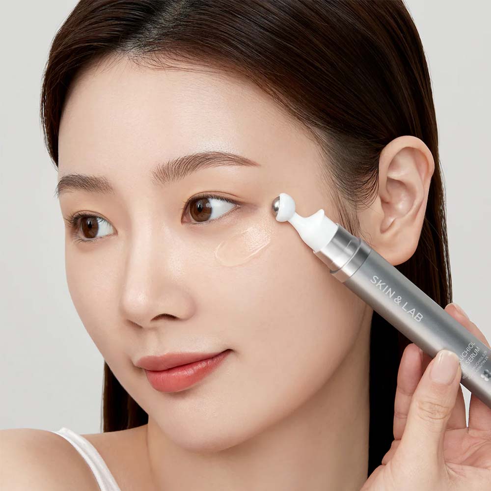 Βίγκαν ορός ματιών με μπακουχιόλη και πεπτίδια, σχεδιασμένος για να μειώνει ρυτίδες,